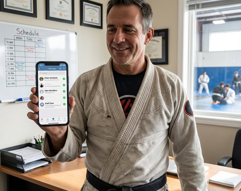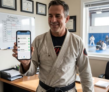 Sem complicação, sem termos difíceis. Só estratégia que funciona para academias de jiu-jitsu.